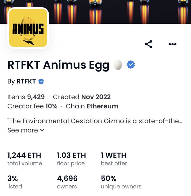 RTFKT Animus Egg NFT giveaway π₯ Floor price is 1.03