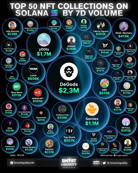 🏆 TOP 50 NFT COLLECTIONS ON SOLANA BY 7 DAYS VOLUME