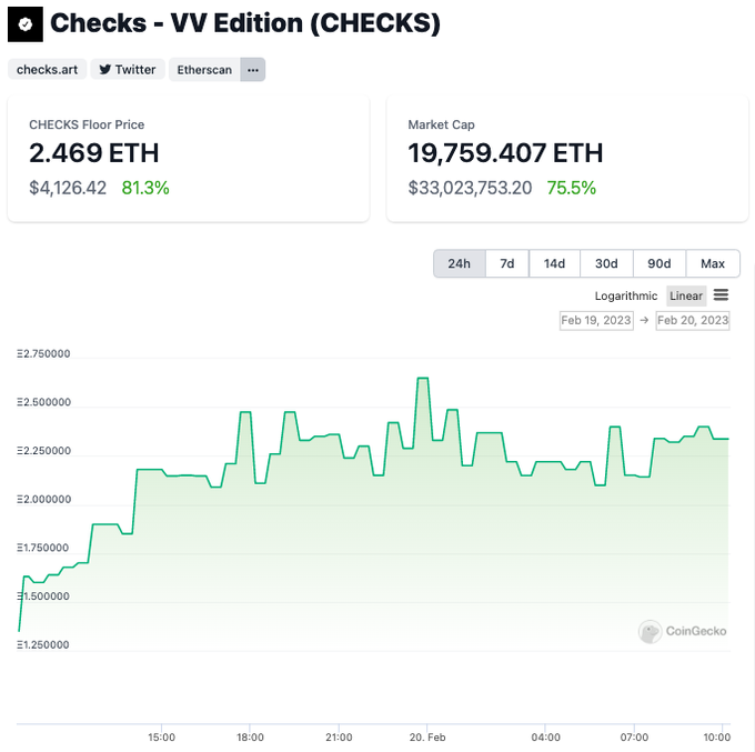 #NFT Watch: Floor price of @checksNFT is up 81.3% in