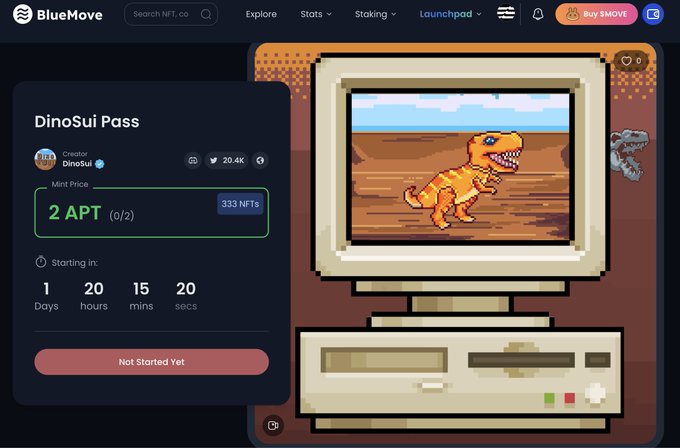 ๐จDinoSui Pass is live on @BlueMove_OA on Aptos ๐ฅOnly