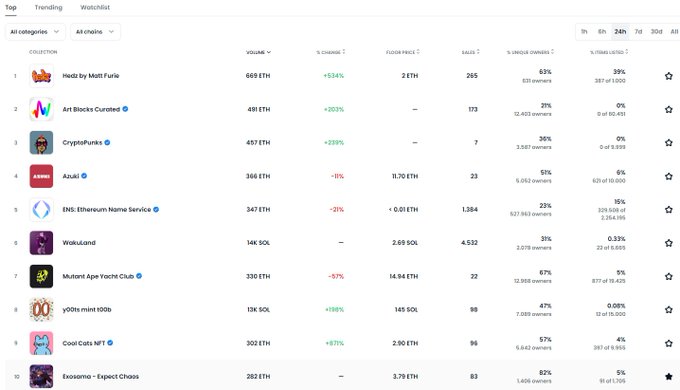 #Exosama @ExosamaNFT is now in the TOP10 #NFT collection