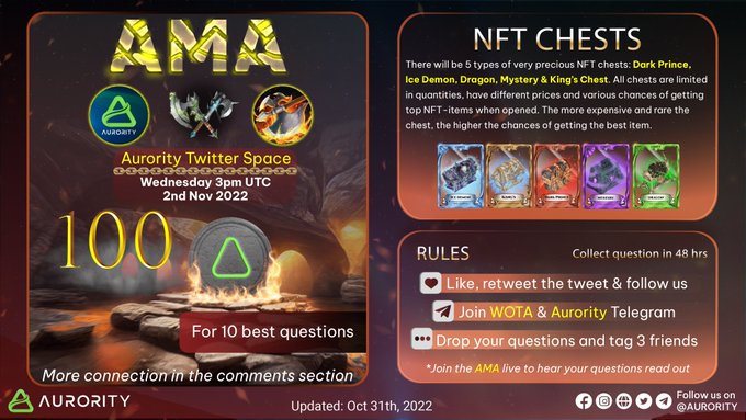 🚨AURORITY x WOTA #AMA🚨 💰100 $AURORA for 10 best questions 🛑48hrs