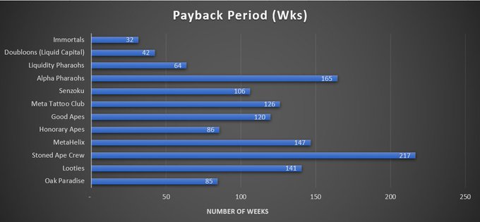 Solana NFT payback periods based on the current floor