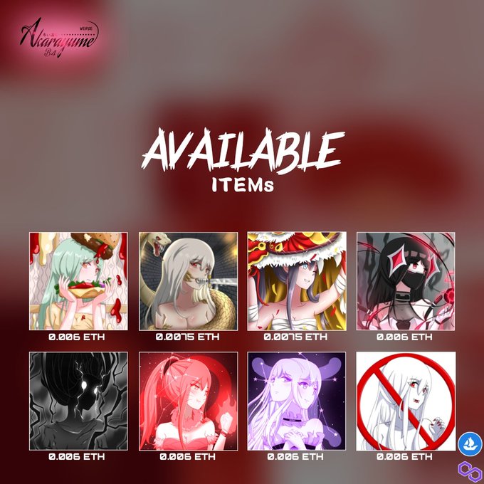 GM fams 😉🌸 Akarayume available items 8 items on primary