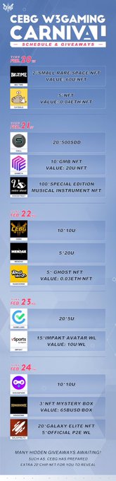 📋CEBG Carnival Gaming Schedule Tons of WL, NFT, and