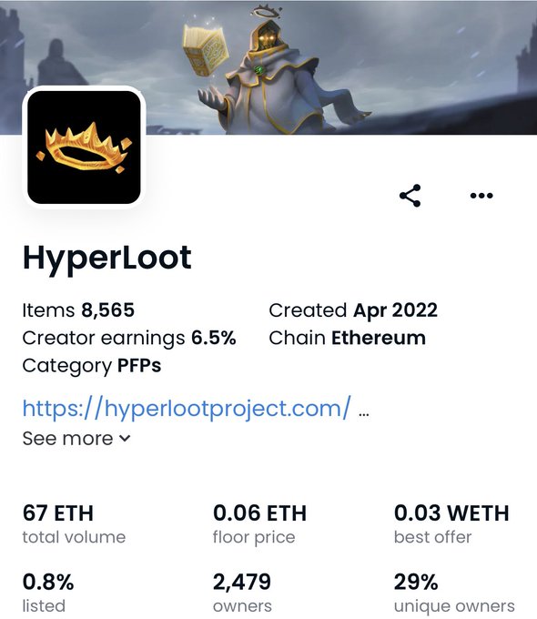 HyperLoot NFT Giveaway x2 Floor price = 0.06 (75$) -