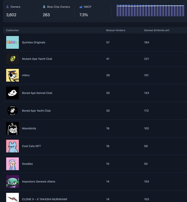Not a bad list of holders hey ? @Dirt_Birds_NFT #DirtBirdsNFT