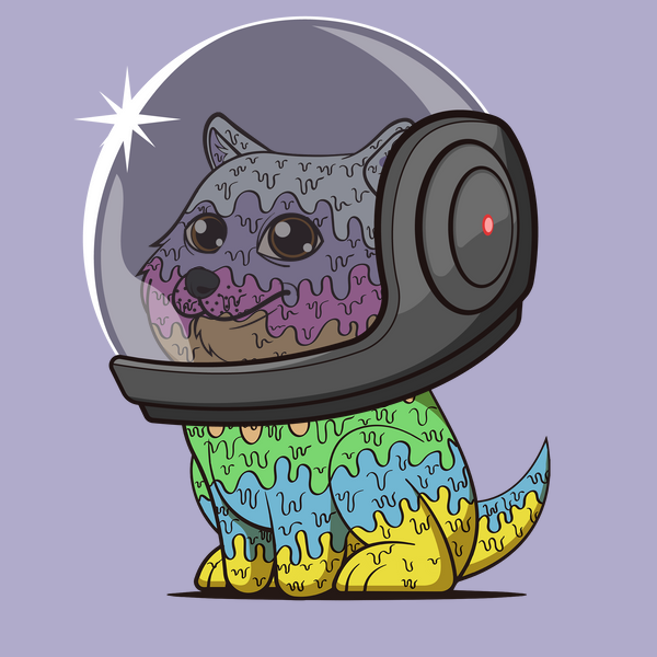 A baby doge NFT with melted fur and cute eyes wears