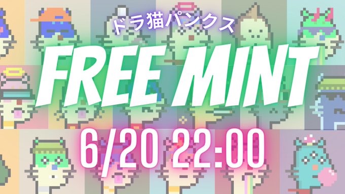 \🐱#ドラ猫パンクス フリーミント/ ⏱6/20(本日)22:00⏱ $DORA ジェネラティブNFT