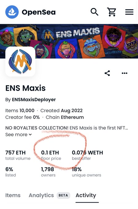 #ENSMaxis back @ .01 $ETH Floor 🚀🔥🚀🔥🚀🔥🚀🔥🚀🔥🚀🔥🚀 Don’t