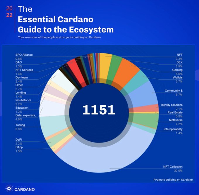Over 1,000 projects building on #cardano. About 1/3