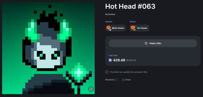 Hot Head #063 auction has ended🔥 Highest bid: 429