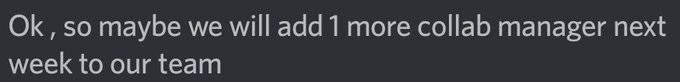 Maybe Need another collab manager next week! Keep