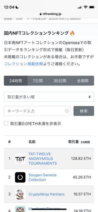 TAT ranked number 1 among Japanese NFT collections