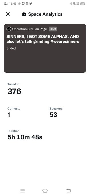 SINNERS, probably the longest twitter space I have