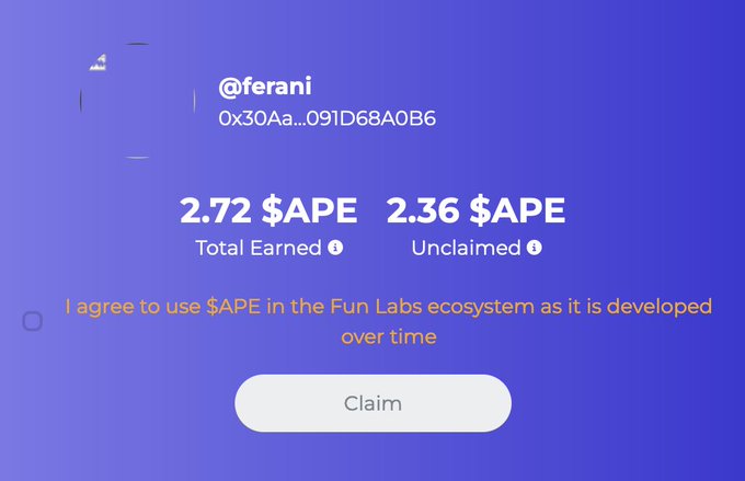 Just joined the #FunApesNFT and already earning ApeCoin