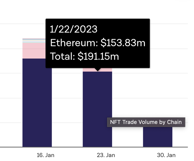 About 3/4 of #NFT volume is still on #ethereum! https://t