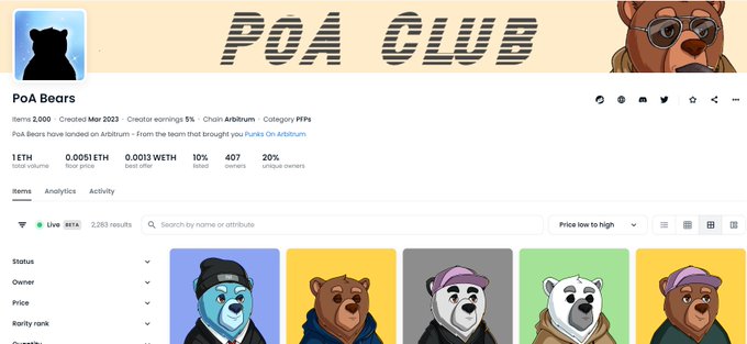 PoA Bears now reached 1 ETH volume. 🔥 To celebrate