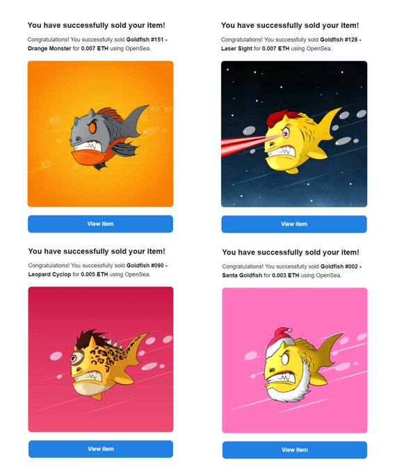 🥳 SOLD 🥳 4 Goldfishes were just adopted by @digcarrot