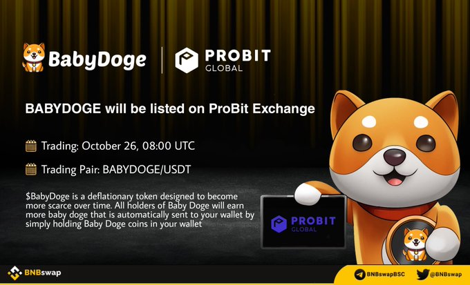 ๐ข @BabyDogeCoin $BABYDOGE will be listed on @ProBit_Exchange