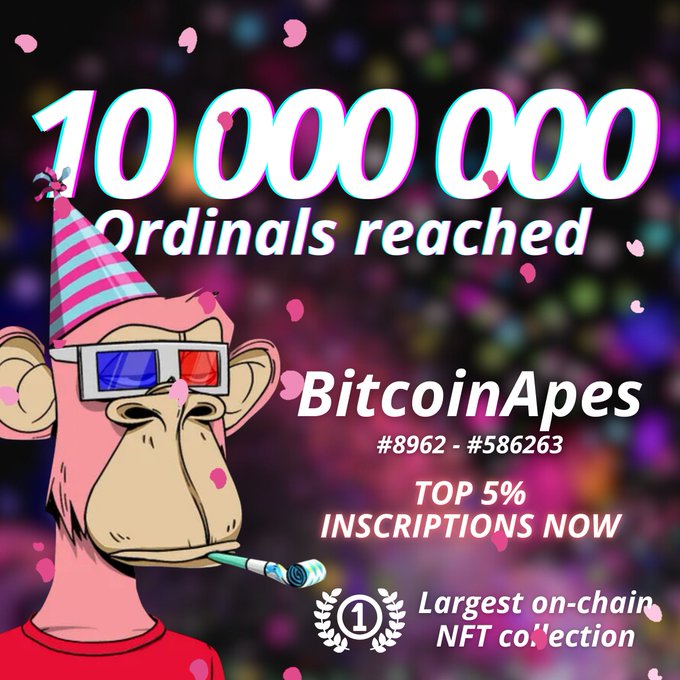 10 million ordinal inscriptions done 🚀 Bitcoin Apes