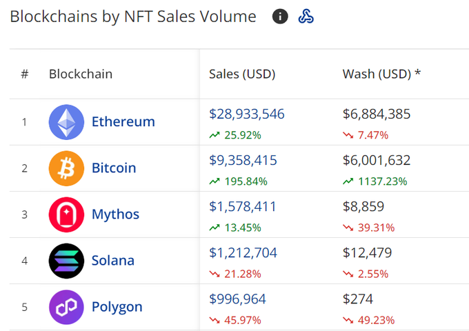 NFT Sales Volume by Blockchain in the last 24 hours Bitcoin: