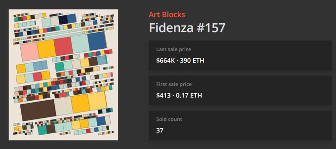 Fidenza #157 sold for 390.00 ETH ($663,744) WTF