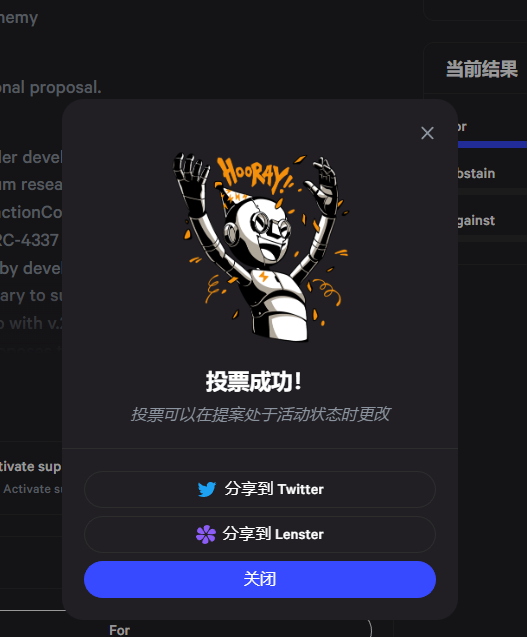 毒液新增一个任务,现总共得到11个NFT, https://t.co/zLnznAiTyf ARB新的投票,已帮大家代投! 未委托的领哥的,自己可以参与下! https://t