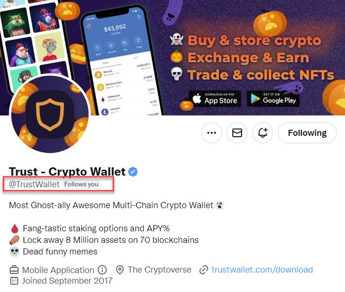 Many thanks for your #TRUST and for following us @TrustWallet
