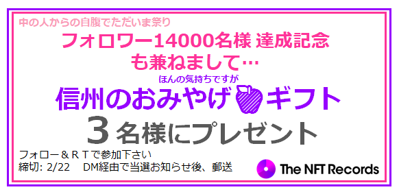 🍎中の人の勝手祭開催🍎 #TheNFTRecords フォロワー14000名様記念も兼ねまして 信州おみやげギフトを3名様に