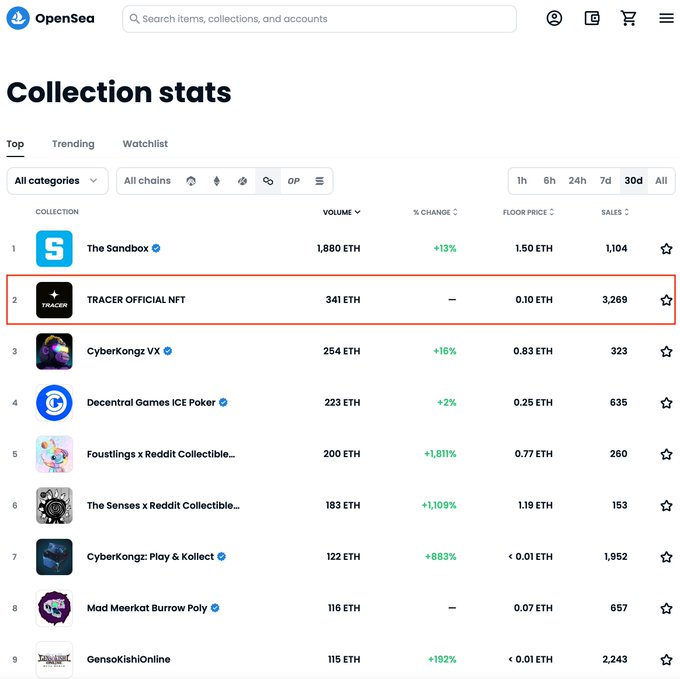TRACER is TOP 2 in the Polygon market in OpenSea, which