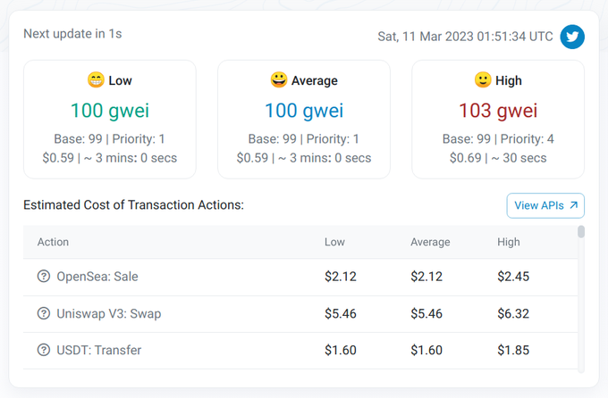 3 digits ETH gas right now. ⛽️🥵 https://t.co/vCVqs