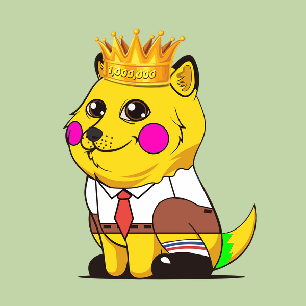A baby doge NFT with a yellow mint background and clown