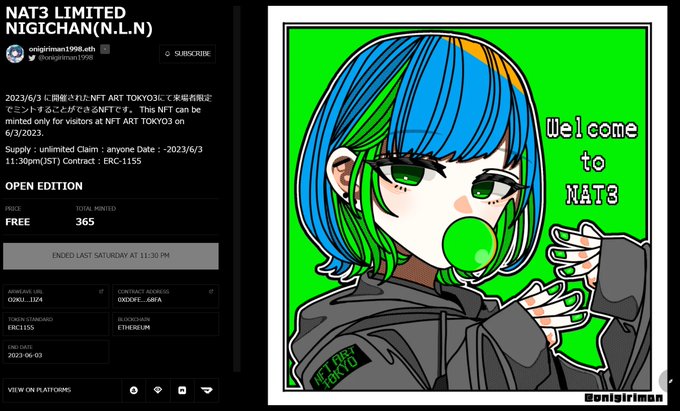 NAT3にて配布していたNFTたくさんmintしていただきありがとうございました!! https://t