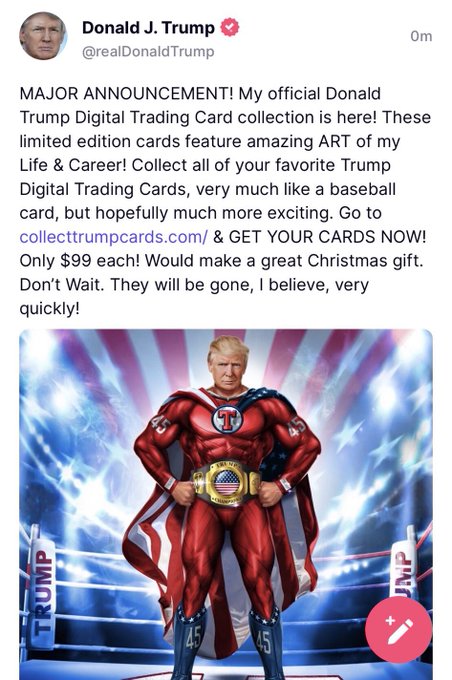 trump is releasing NFT trading cards of himself… it