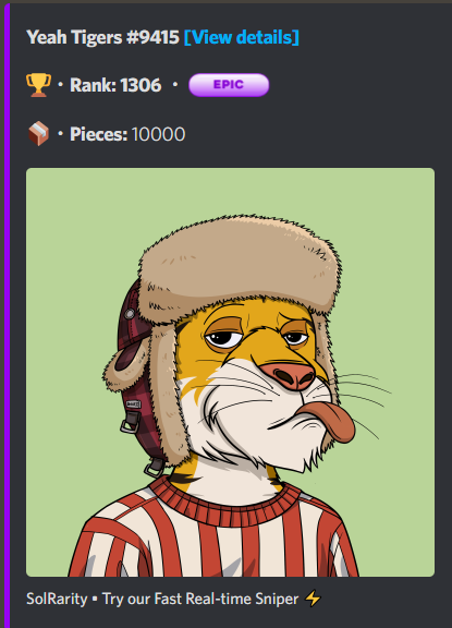 My new PFP!!! 🟣 {Epic} 🟣 @yeahtigers GoTigers🐯 #SolanaNFTs