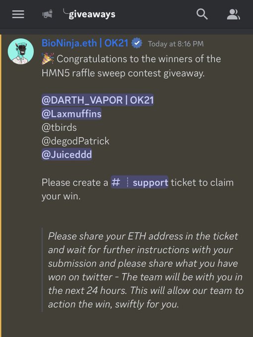 Winners of the HMN5 Sweep Raffle announced in the last