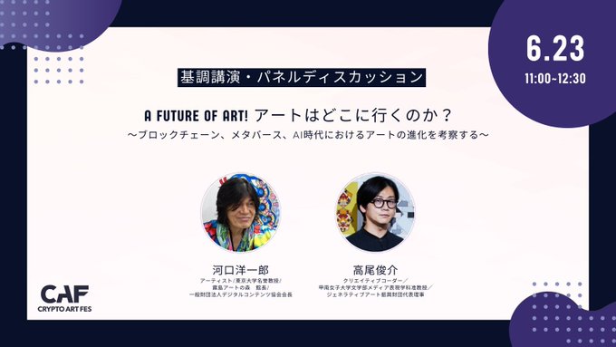 6/23(金)11:00-12:30 にNFTアートの祭典「Crypto Art Fes 2023」の基調講演として,日本CG界のレジェンドでアーティストの河口洋一郎さんとお話することになりました.新旧ジェネラティブアート,白熱した議論を交わしたいです!ぜひご参加ください. https://t