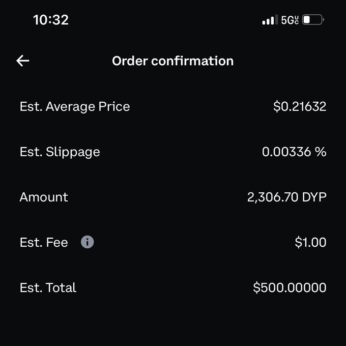Pepe throw in $500 usd fresh cash into $Dyp at $0.216
