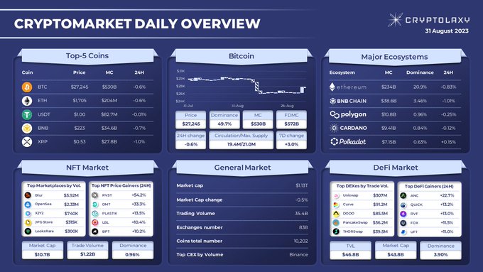 #CRYPTOMARKET DAILY OVERVIEW Within the last day: 🔹