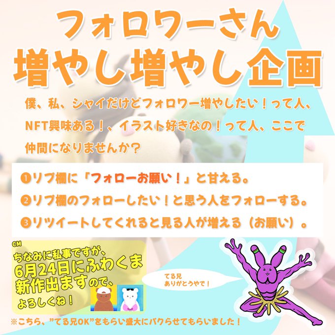 【フォロワーさん 増やし増やし企画】 皆さん【フォローお願い!】だけリプして、仲間増やしませんか? ・イラスト描いてるけどNFT興味ある
