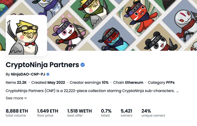 CNP's total volume on OpenSea has reached 8,888 ETH🎉 It's