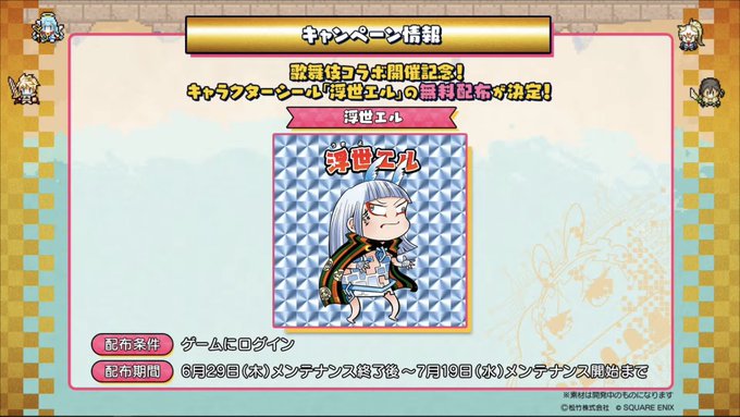 「浮世エル」無料配布きた!!! NFTただでGETできるの激アツすぎる!!! これ、未プレイ勢とか引退勢とか全員に伝えてあげたほうがいい! 無料でGETしたNFTが数ヶ月後・数年後に値上がりした、みたいな事例山ほどあるからな。 絶対にコラボ期間中1回はログインしよ。 #資産性ミリオンアーサー…