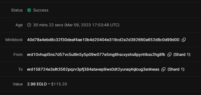 Just received 2.96 $EGLD ($115) for participating in