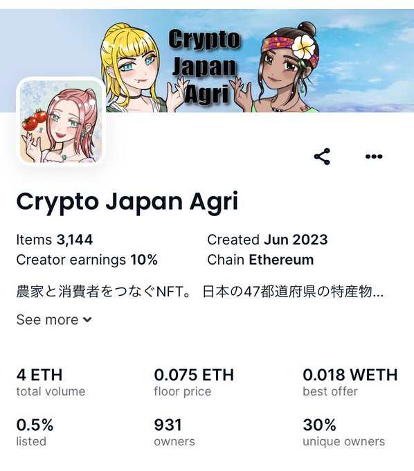みなさまありがとうございます🙇 6/13現在 ⭐️フロア価格 0.075ETH ⭐️リスト率 0.5% NFTを使った農業のカタチ tomajo