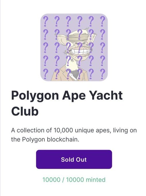 Congratulations @PolygonApeYC just sold out 10000 MINTS #PAYC