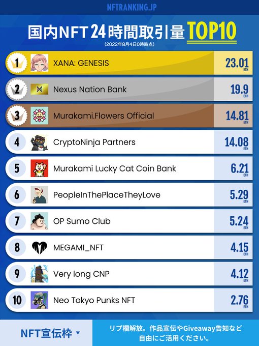 #XANAGenesis is still staying at No.1 in Japan's #NFT