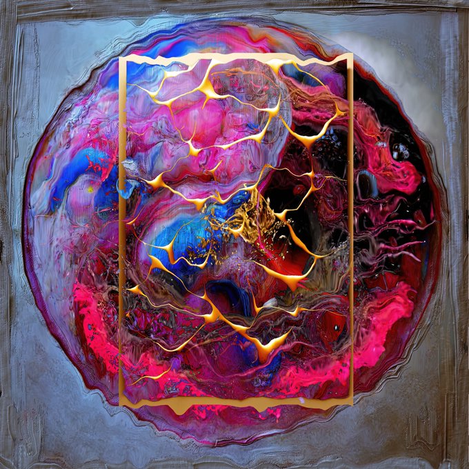 「溶けて混ざる」 ★LIST中★ 抽象画です。融解がテーマ 金色が綺麗に出て気に入っています ↓