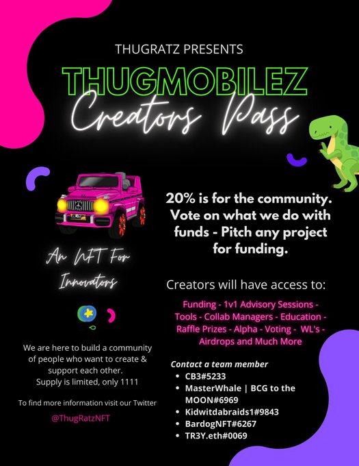 🌈 WHITELIST GIVEAWAY 🌈 3X ThugMobilez NFT WL Spots 5x
