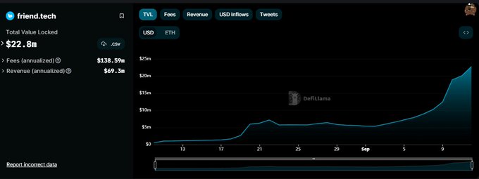 Friend Tech TVL up only Stalled a bit with Banana